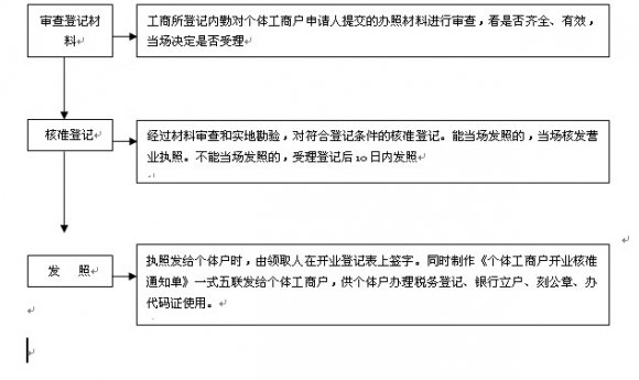 1、咨询后领取并填写《名称(变更)预先核准申请书》,同时准备相关材料;2、递交《名称(变更)预先核准申请书》,等待名称核准结果;3、领取《企业名称预先核准通知书》,同时领取《个体工商户开业登记申请书》;经营范围涉及前置许可的(具体项目参见北京市工商行政管理局印制的《北京市企业登记许可项目目录》),办理相关审批手续。