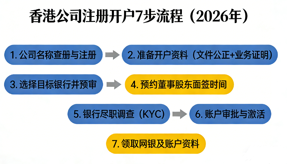三、香港公司注册开户流程:7步高效完成(附流程图)